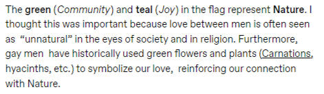 The label and flag, was created as a means for gay people to express themselves due to controversy surrounding older versions of flags meant for gay people- as well as providing another term to describe oneself if they so desired.